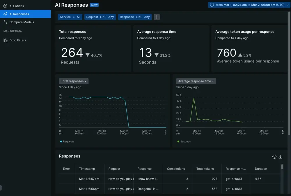 Go to one.newrelic.com > All Capabilities > AI Monitoring > AI Responses