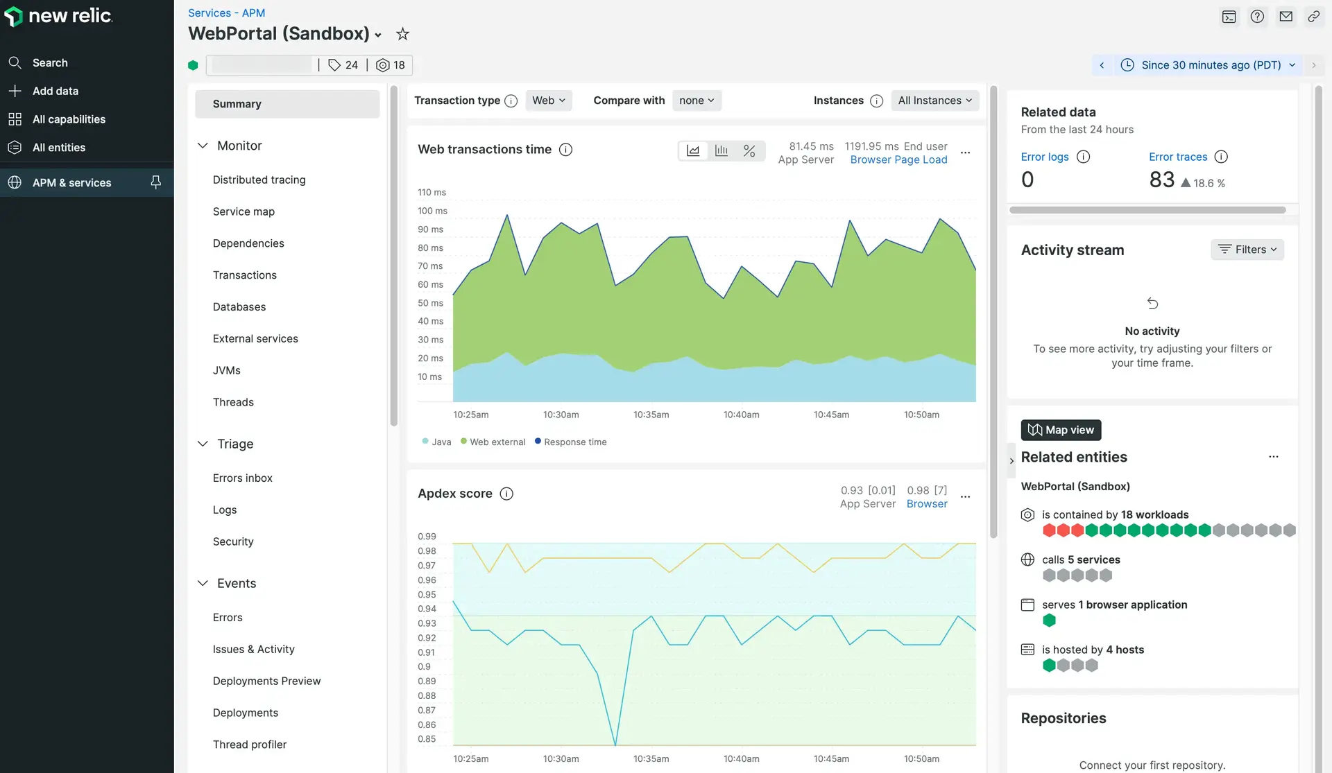 New Relic supports the most popular Java app servers, frameworks, virtual machines, and tools. Once installed, the APM agent monitors your app's performance and gives you insight into that performance. You can use this doc to get started manually, or you can install the Java agent through the New Relic UI.
