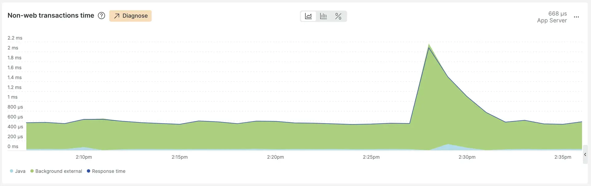The Lookout Diagnose button embedded in an APM web transactions time chart