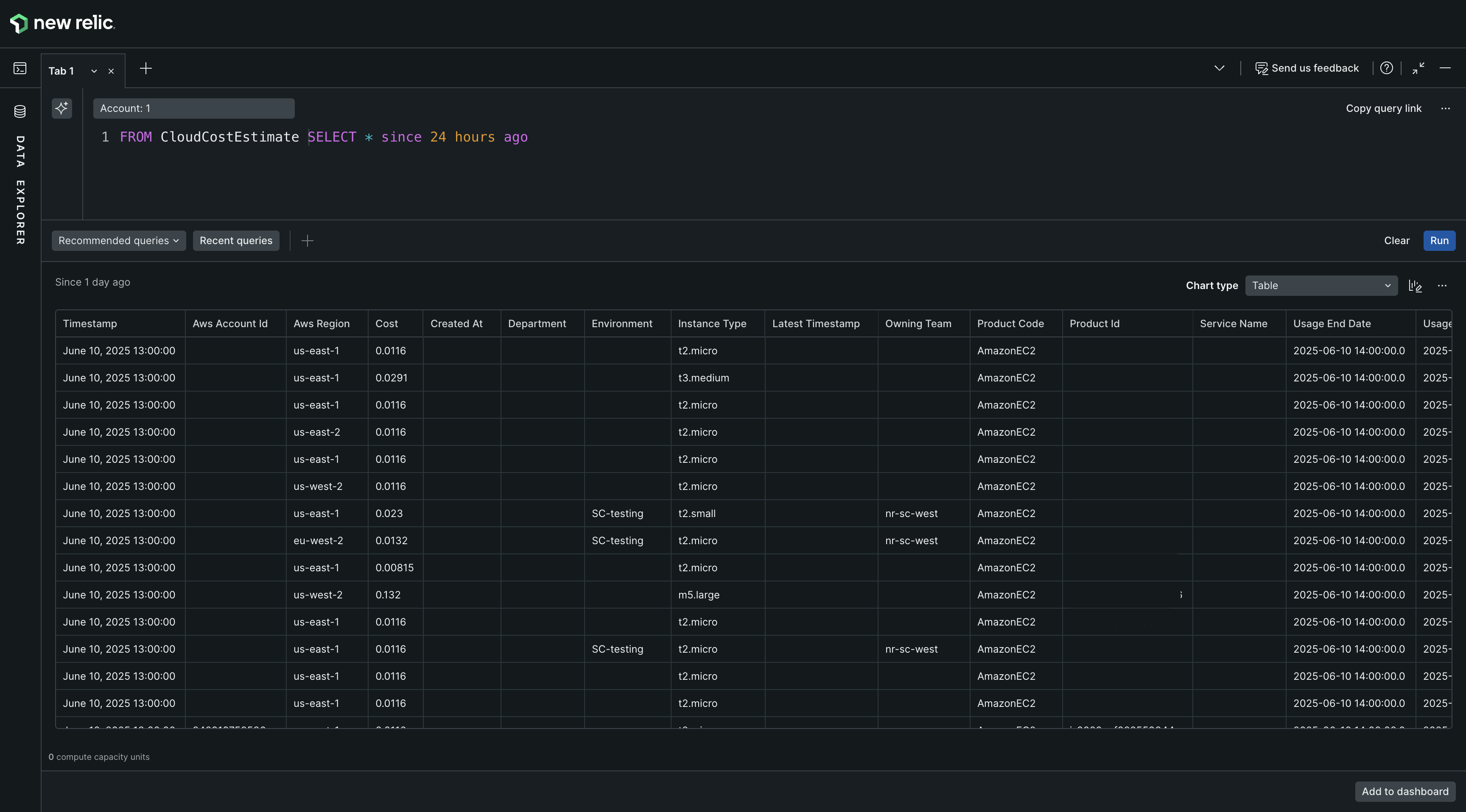 FROM CloudCost SELECT * SINCE 24 hours agoField name | Type | Description |