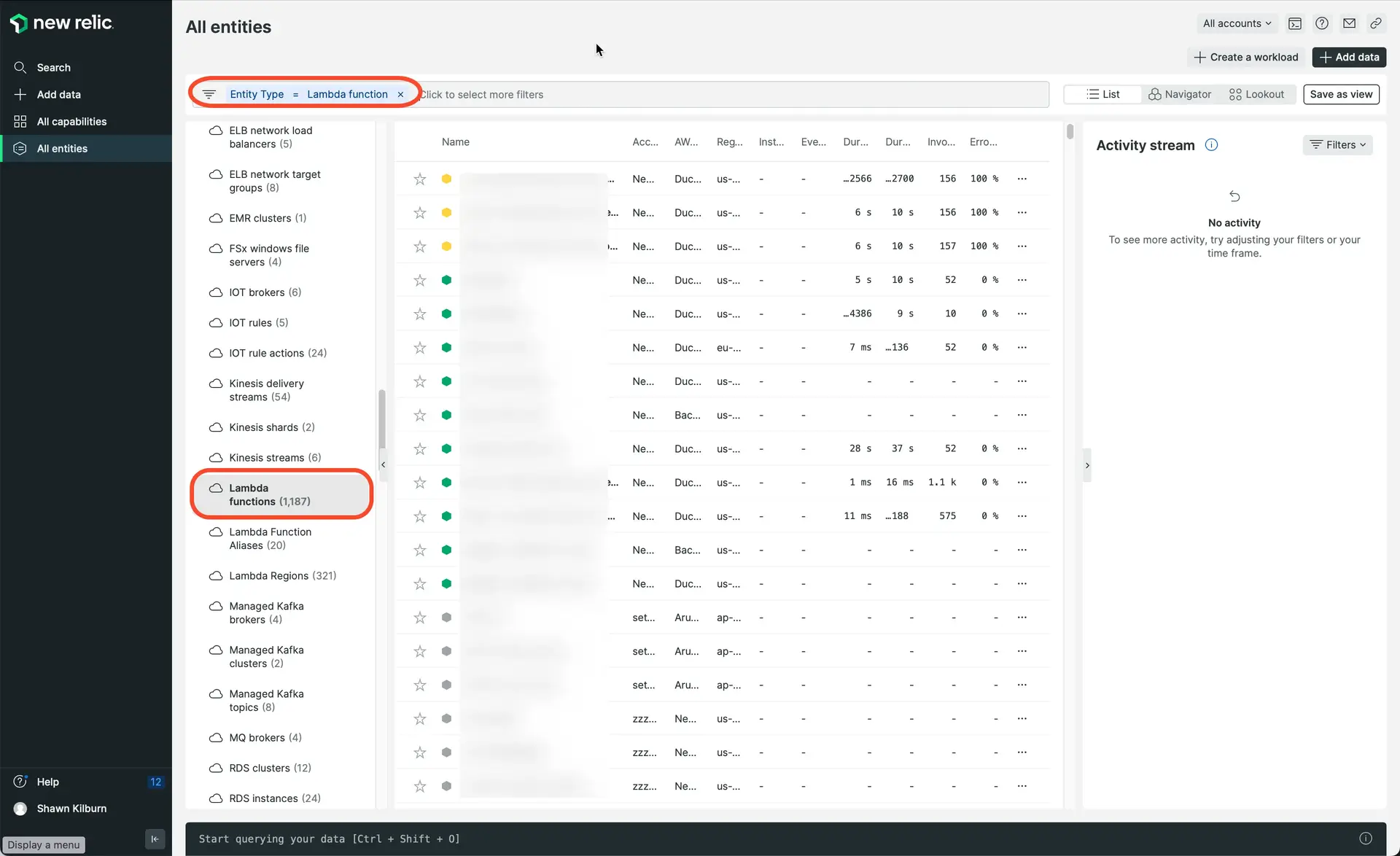 To view your Lambda data in New Relic: Go to one.newrelic.com, click Explorer. In the left nav under Amazon Web Services, click Lambda functions.