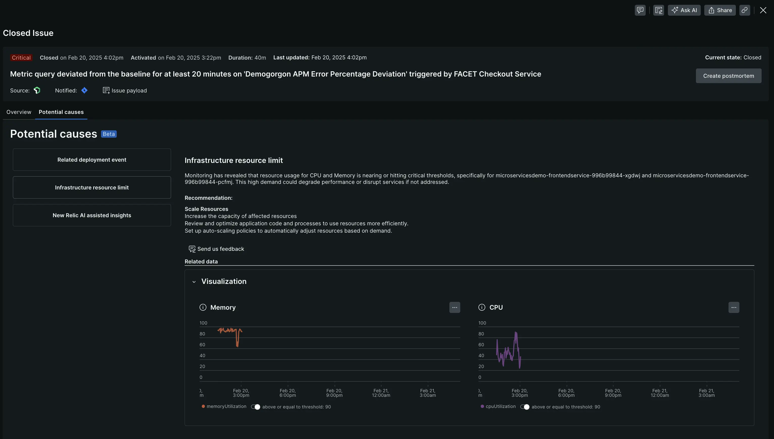 In some scenarios, our causal engine may not identify an algorithm-driven cause. However, we have insights that, when combined with with LLMs, can offer you actionable steps. To access this capability, you must have the New Relic AI entitlement enabled.